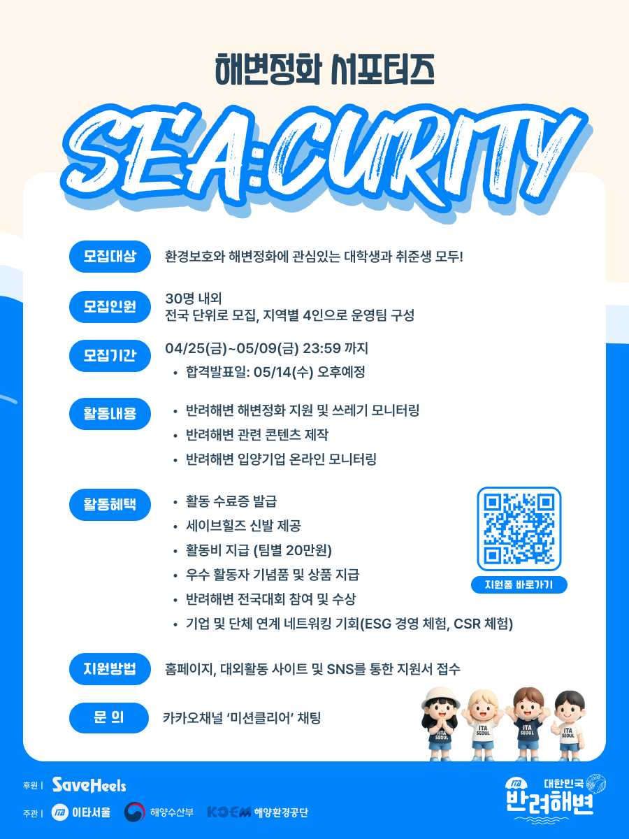 바다를 지키는 청년 서포터즈 ? 씨:큐리티 SEA:Curity 모집!