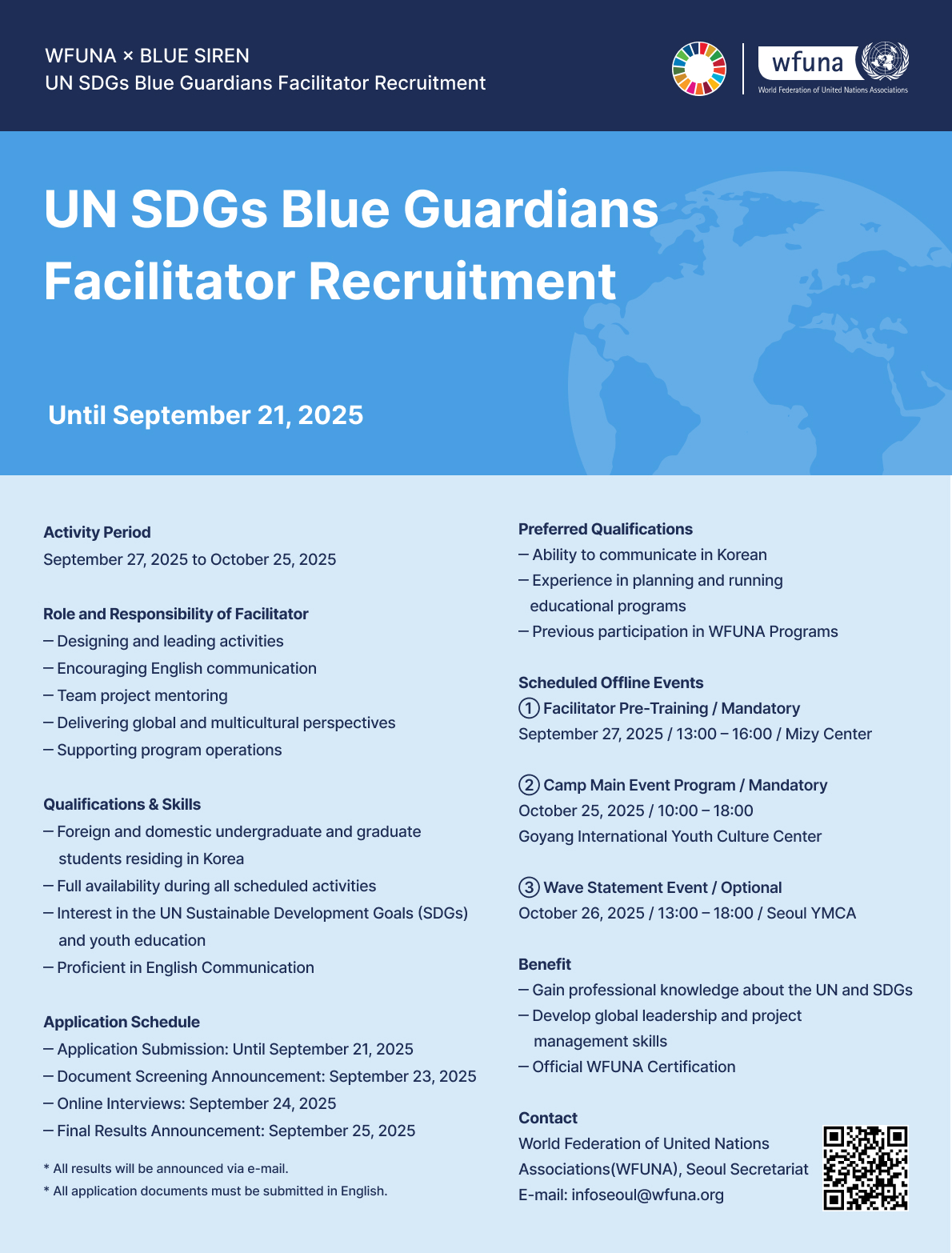 [WFUNA x Blue Siren] 2025 UN SDGs Blue Guardians Facilitator Recruitment