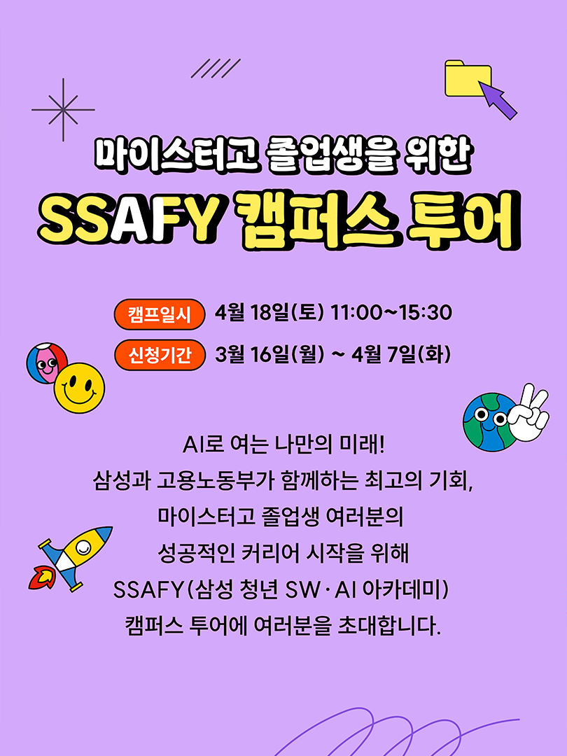 SAMSUNG X JA Korea 2026 삼성 청년 SW∙AI아카데미 SSAFY캠퍼스 투어 참가학생 모집