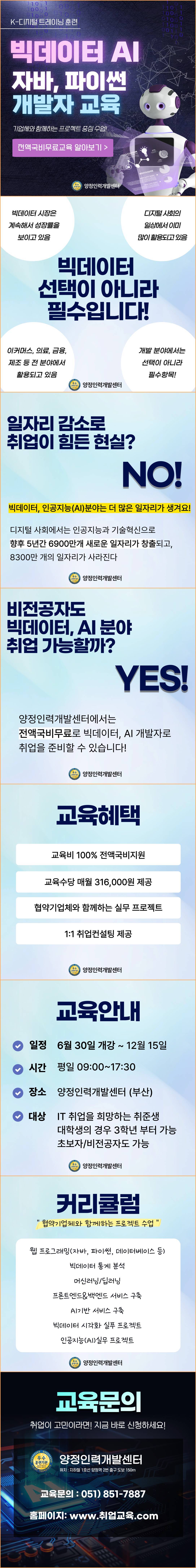 - **교육 내용**: 프론트엔드, 백엔드, 데이터베이스, 파이썬, 빅데이터, AI 실습