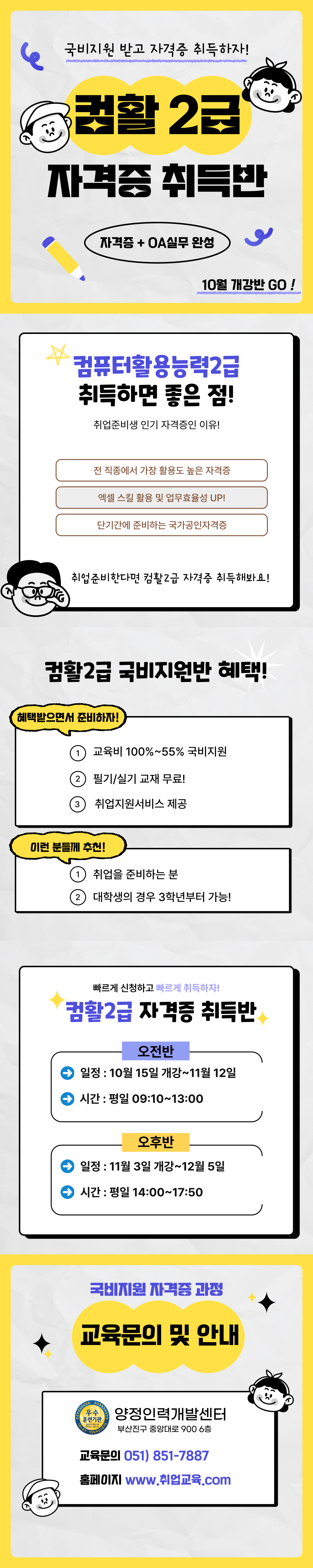 - 접수: 홈페이지(www.취업교육.com) 또는 전화(051-851-7887)