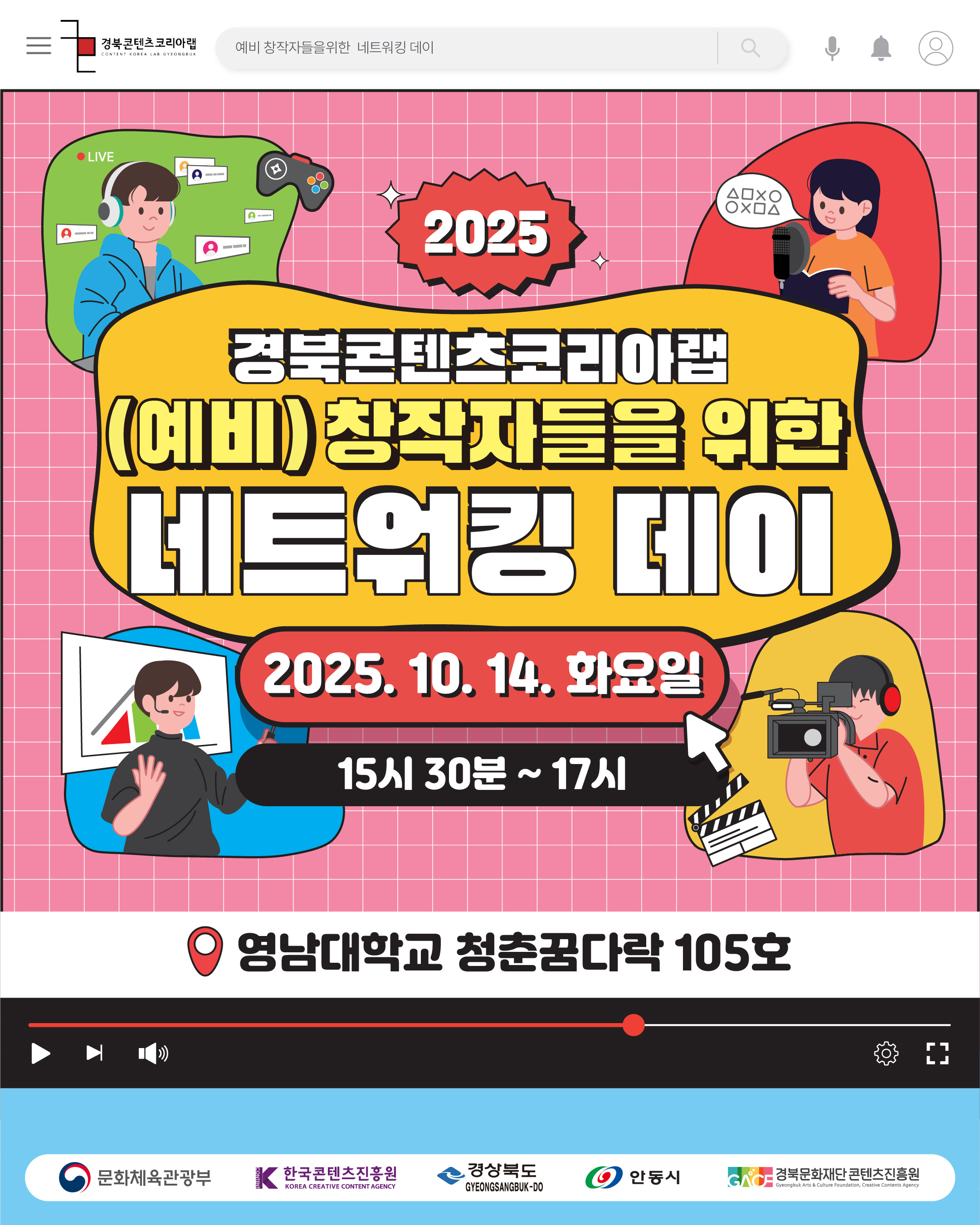 - 대상: 경북도내 콘텐츠 창작 분야 현직자 및 예비 창작자