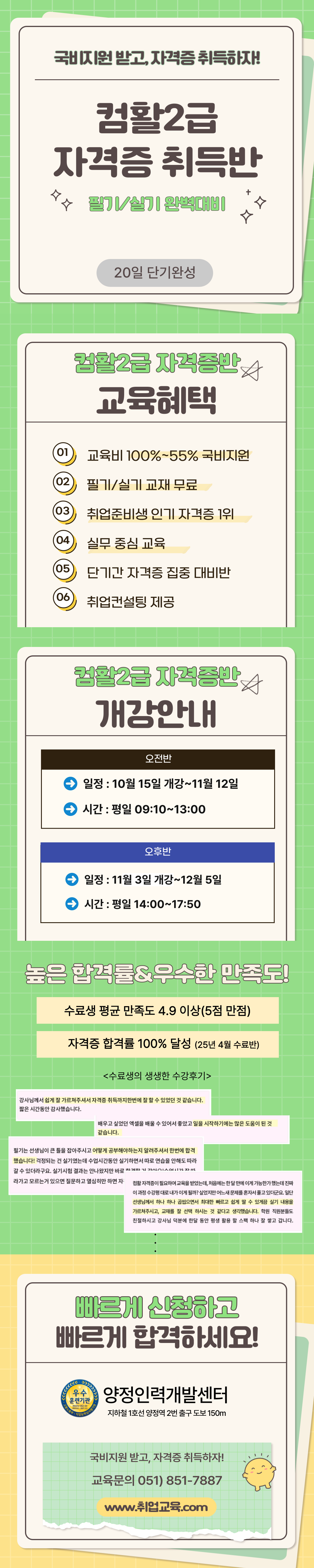 - 접수 방법: 홈페이지(www.취업교육.com) 또는 전화(051-851-7887)