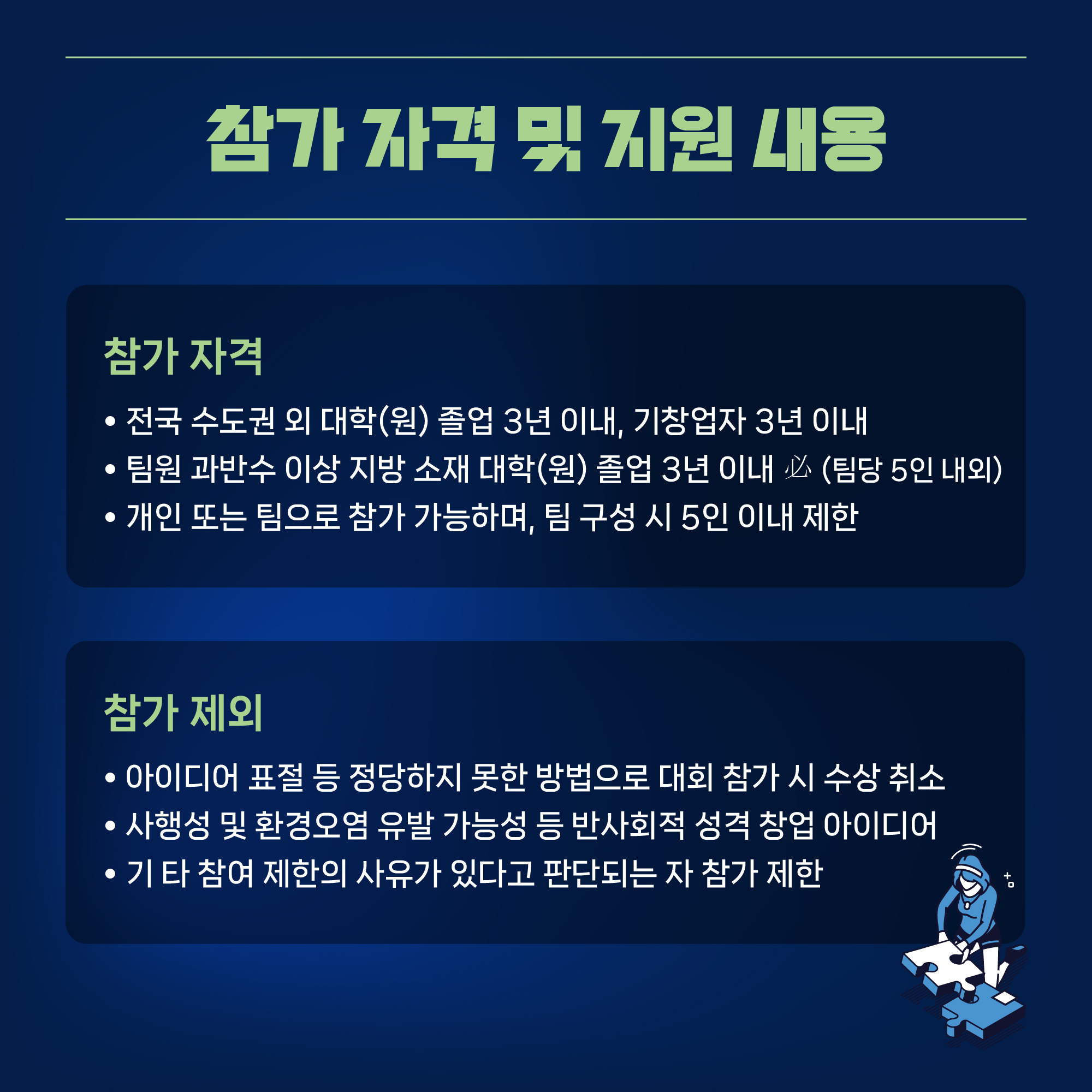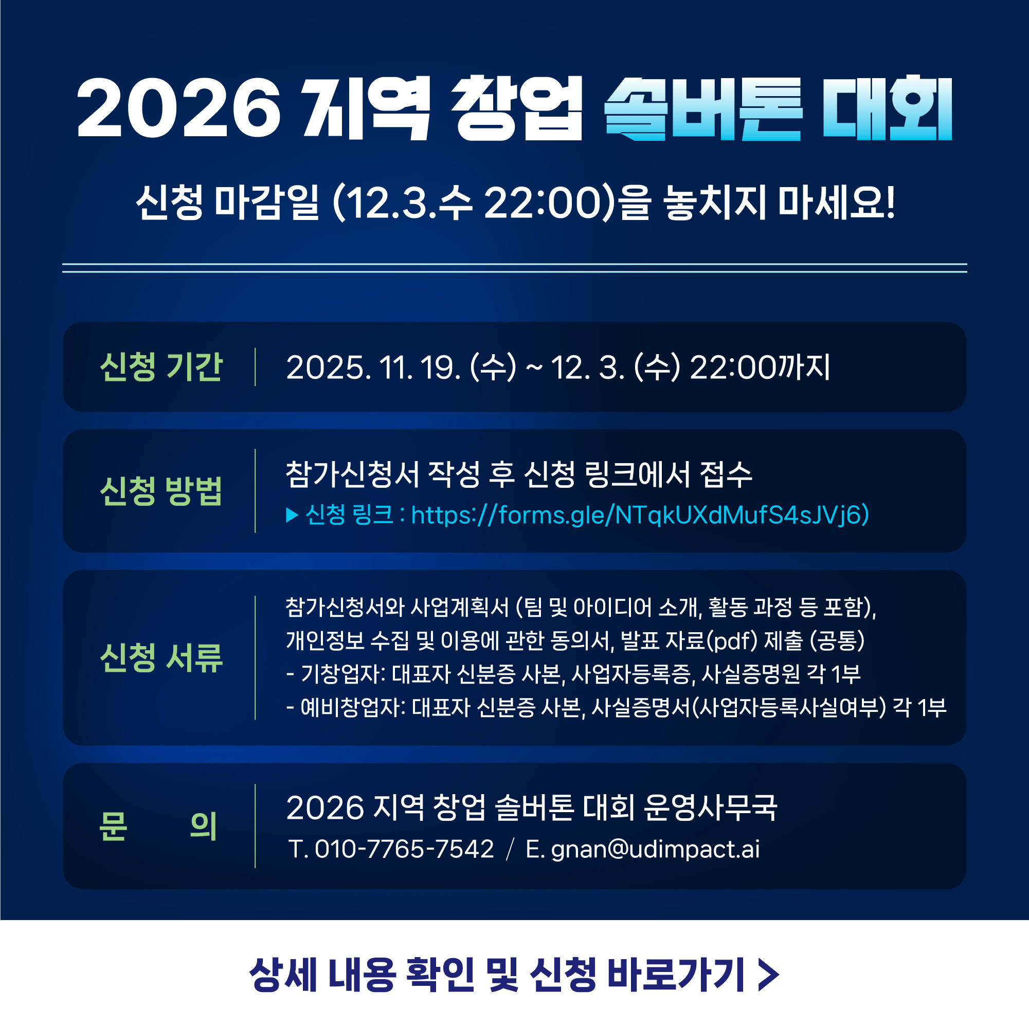 - 참가 대상: 수도권 외 대학 재학생 및 졸업 3년 이내, 지역 기창업자