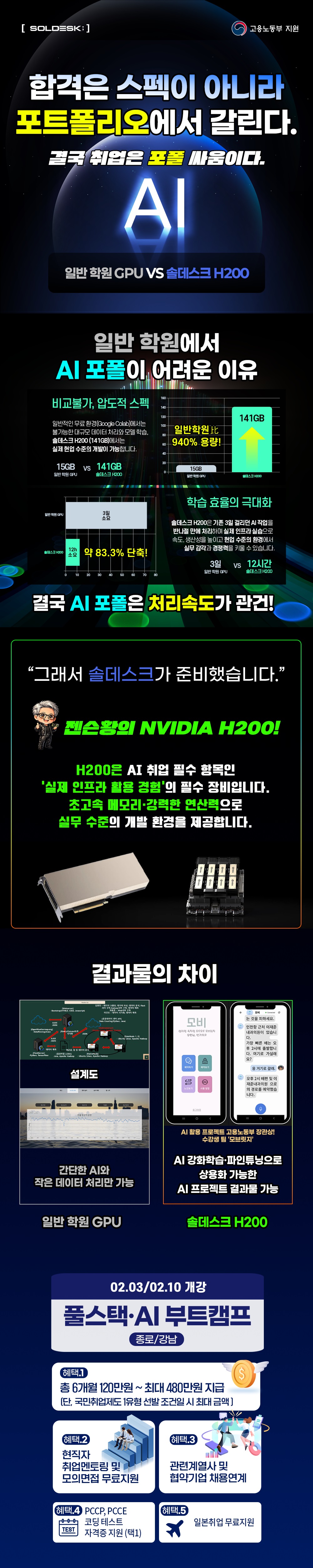 - 커리큘럼: 백엔드 개발, 데이터 분석, AI 서비스 구현, NVIDIA H200 실습