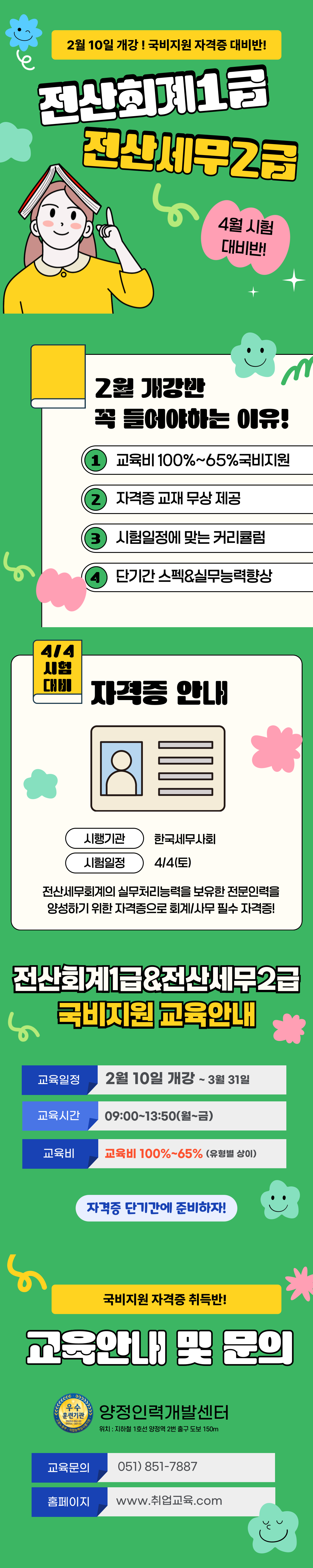 회계사무원 양성(전산회계&전산세무 자격증 취득)