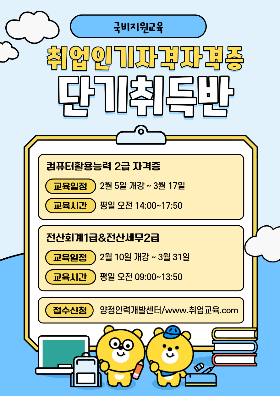 지금이 기회! 인기 자격증, 단기 완성, 국비지원까지