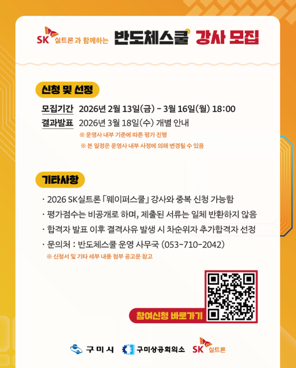 1) 2026 SK실트론 [웨이퍼스쿨] 강사 중복 신청가능