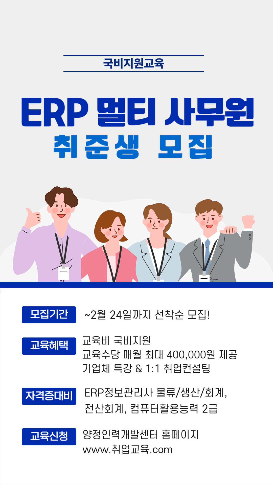 - ERP정보관리사(물류·생산·회계),전산회계,컴활 등의 자격증대비 교육
