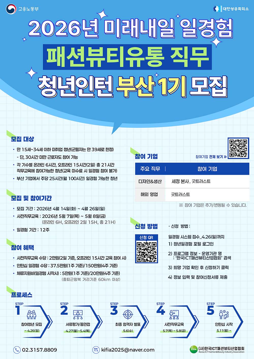 2026년 미래내일일경험(인턴형) 패션뷰티유통직무 부산1기 청년참여자 추가모집