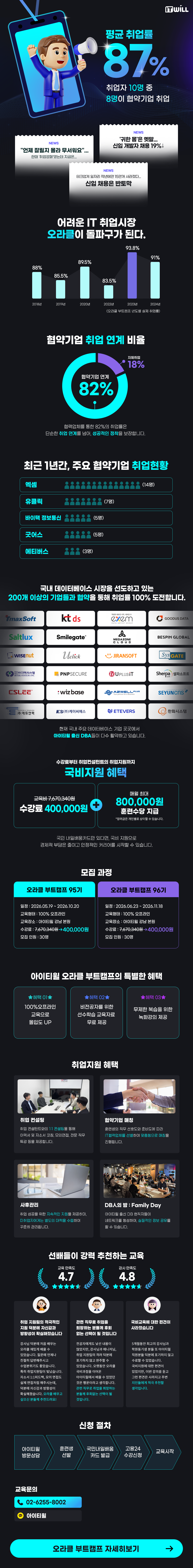 아이티윌 독점운영, 오라클 부트캠프, 취업 연계율 82%, 파트너사 200곳 이상